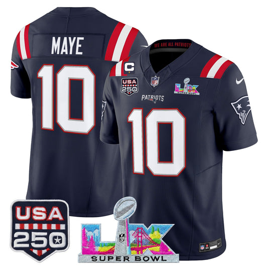 Men's NE Patriots 2026 Jersey - Super Bowl LX + USA 250 Patch